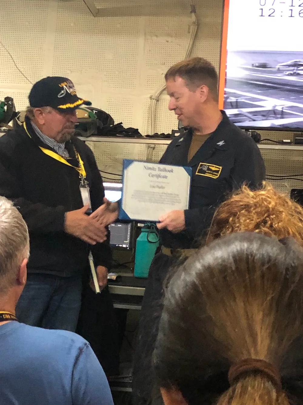 As we were leaving our time on the ship, with his tongue firmly planted in his cheek, Commander Novak gave each of us a commemorative “Nimitz Tailhook Certificate” which read: